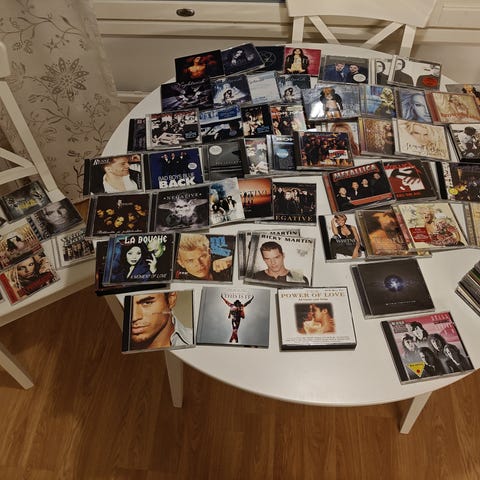 CD-levykokoelma, joka sisältää useiden artistien ja yhtyeiden albumeita. Kuvassa näkyy ainakin HIM-yhtyeen levy sekä Northern Kings -yhtyeen levy ja Sonata Arctica -yhtyeen levy. Fyysiset äänitteet muovikotelossa. Sopii kuunneltavaksi CD-soittimella tai kokoelmakäyttöön. Myydään yhtenä eränä kuvassa näkyvien levyjen mukaisesti.