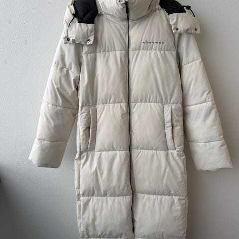 Myyntiin superlämmin pitkä Röchnisch toppatakki (“makuupussitakki”). Koko XS, mutta reilu mitoitus – sopii myös S–M.