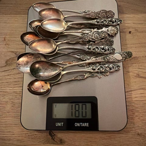 Koristeellinen teelusikkasetti, jossa 6 kappaletta saman mallisia lusikoita. Lusikoissa on yksityiskohtainen kaiverrusvarsi ja kullansävyinen sisäpuoli. Materiaalina on metalli, tarkempi seos ei ole tiedossa. Yhteispaino on noin 72 g, kuten kuvassa näkyy. Sopivat esimerkiksi kahvi- tai teelusikoiksi tai kattauksen koristeelliseksi lisävarusteeksi.