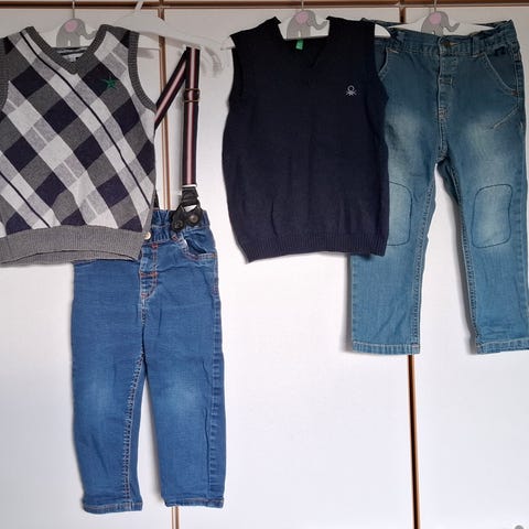 - mustat farkut kokoa 92, mutta menneet myös koossa 98