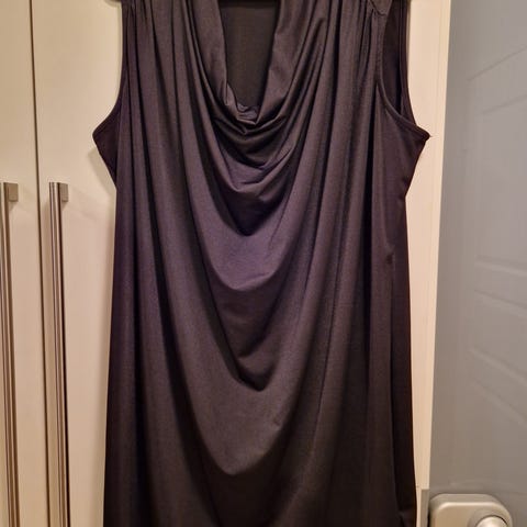 Mustavalkoinen mekko, jossa kankaiset nahkajäljitelmä yksityiskohdat. Mekko venyy, mitat k-k n.45 cm ja pituus n.90 cm. Ostettu n. 10 v sitten Kreikasta ja on säilynyt todella siistikuntoisena.