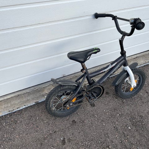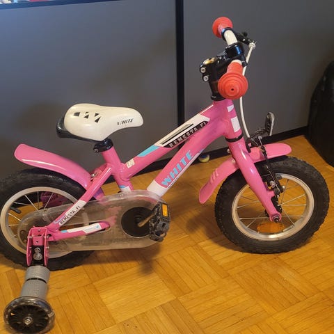 White Lite MTB lasten polkupyörä, 12" renkaat. Pyörässä on matala runko, jalka- ja käsijarru. Ehjä ja toimiva, mutta paljon käytetty. Suoraan ajosta, pesu ja huolto jää ostajalle.
