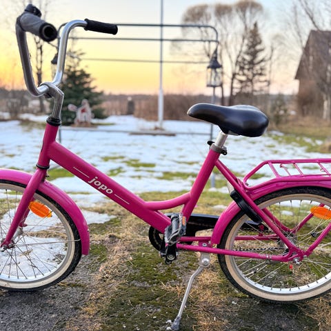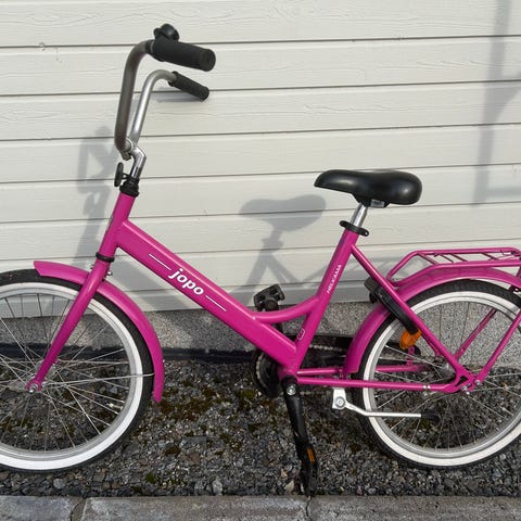 Pieni Jopo lapselle ensimmäiseksi polkupyöräksi tai ajotaidon harjoitteluun. Pyörässä on 12 tuuman renkaat, keltainen runko ja musta satula. Mukana on apupyörät, jotka tukevat ajon opettelua. Pyörässä on etu- ja takalokasuojat sekä kiinteä tavarateline. Takaosan punainen heijastin on rikki, muuten pyörä on hyvässä kunnossa.