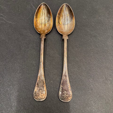 Hopeita ruokahaarukkasetti, jossa on kuusi haarukkaa. Haarukoissa on koristeellinen, klassistyylinen kuviointi varressa ja päässä. Yhteispaino on noin 391 g. Soveltuu kattaukseen tai täydentämään olemassa olevaa hopeoitua aterinsarjaa.