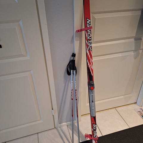 Lasten sukset SNS- siteellä. Pohjat elämää nähneet, mutta edelleen hiihtoa opeteltaessa vallan mainiot. Pohjia ei ole putsattu. Sauvat mukaan!