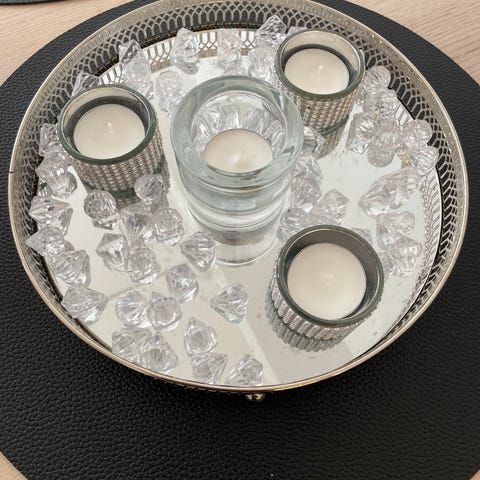 Sekalainen erä erilaisia kynttilöitä ja tuikkukynttilöitä. Mukana on useita paketteja valkoisia tuikkukynttilöitä sekä erivärisiä pöytäkynttilöitä ja kruunukynttilöitä. Kynttilöitä on useissa väreissä, kuten punainen, sininen, valkoinen, ruskea, vihreä ja vaaleanpunainen.