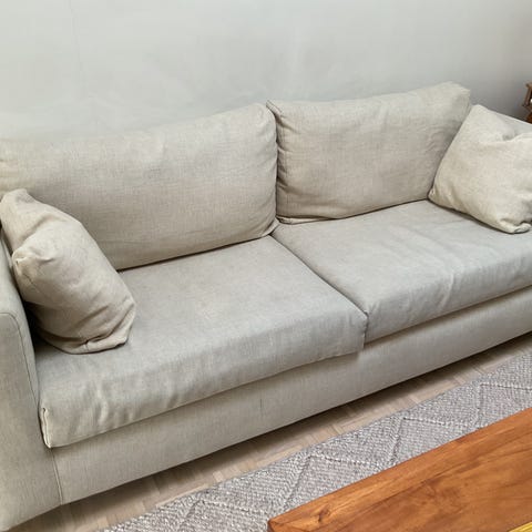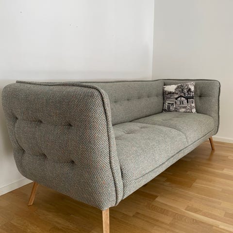Myydään HT Collection Donna 3-istuttava sohva L240xS120xK65cm (istuinkorkeus 45cm) extrasyvä. Kestävä puurunko, laadukkaat materiaalit ja kokonaan irroitettavat päälliset. Verhoilu: Lino delave 111 (100% pellava). Tilattu mittatilaustyönä tehdyilllä kahdeksalla höyhentäytteisellä heittotyynyllä. Ovh. yli 6000€. Kuljetus Uudenmaan alueella sovittavissa.
