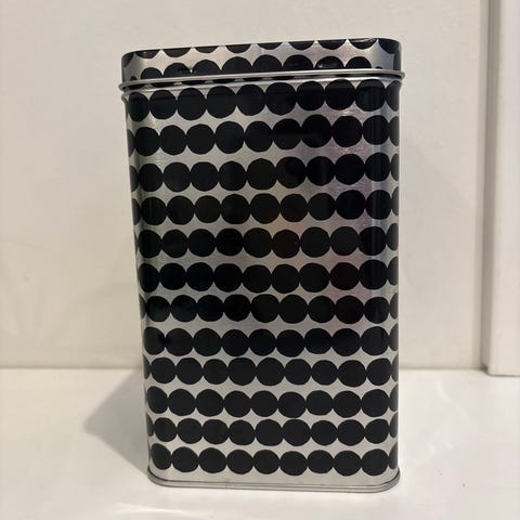 Marimekko metalliset, punaiset purkit yhteishintaan. Olleet käytössä lyhyitä jaksoja jouluisin. Myydään kuvien mukaisena settinä.