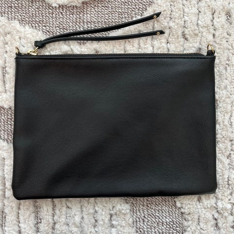 Myydään H&M:n musta olkalaukku. Laukun saa kiinni vetoketjulla. Sisällä yksi pienempi tasku ja ulkopuolella toinen.