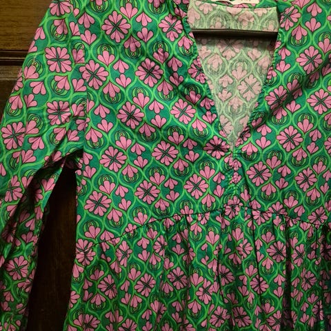 Uudenveroinen kaunis mekko, jossa röyhelöä. Rento väljä malli. Kreppimäistä ohutta kangasta. Viimeisissä kuvissa sama mekko. Koko S