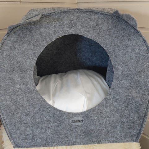 Hyvä kuntoinen pienelle koiralle tai kissalle, pesä. Pesän sisällä oleva pehmuste tyyny on irroitettava.