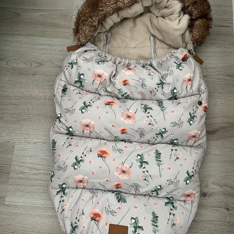 Ticket to heaven kukkakuvioinen lämpöpussi rattaisiin, hiihtokärryyn tai turvaistuimeen. Lämpöpussi fleecevuorella välikauteen eli juuri nyt kevääseen ja sitten taas kesän jälkeen syksyyn.