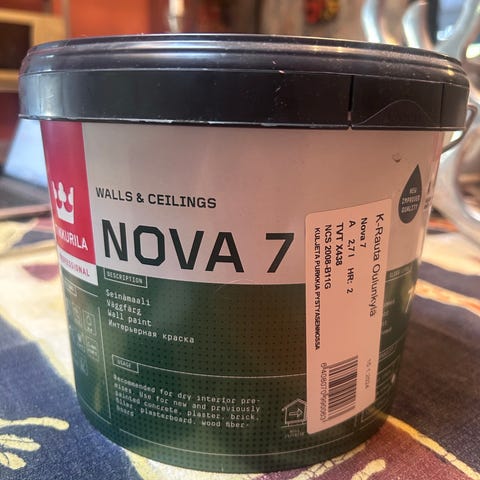 Väri: Valkoinen. A-Pohja. Sävytettävissä vaaleisiin sävyihin rautakaupoissa, esim. K-Rauta, Bauhaus, Prisma.
