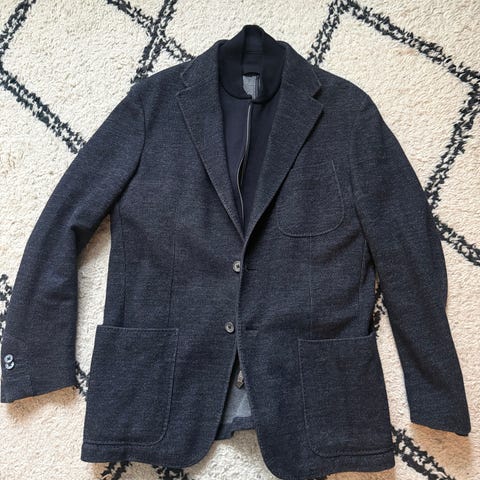 Myydään Boglioli K-Jacket. Harmaa. Täysin rakenteeton ja ilmavan kevyt. Paikkataskut sports jacket tyyliin. Koko 52.