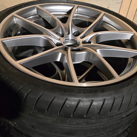 Kuvista näkee kumien koon ja kunnon, kaikin puolin siistit vanteet