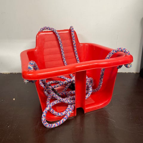 Punainen Plasto vauvakeinu, muovia (narut sisältyvät). Ostettu uutena ja yksi lapsi tällä keinunut. Painoraja 30 kg.