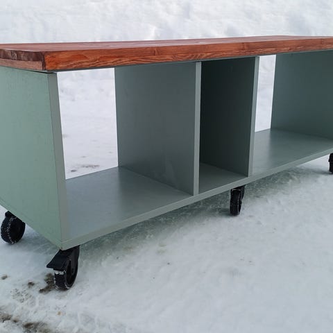 Tämä on 74 korkee, 85 levee ja keskeltä 42 syvä. Rautajalat ja puiset kannet. Sinisellä petsillä käsitellyt. Käytön jälkiä löytyy mutta jämäkkä pöytä jos tällaista tarvitset. Ei heilu eikä huoju vaikka joku onkin laittanut kulmaraudat ylimmän kannen alle. Varmaan ollut joskus laipiossa kiinni. Merellä ymmärrettävää, maalla vähin. Pysyy näinkin pystyssä.