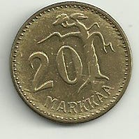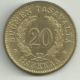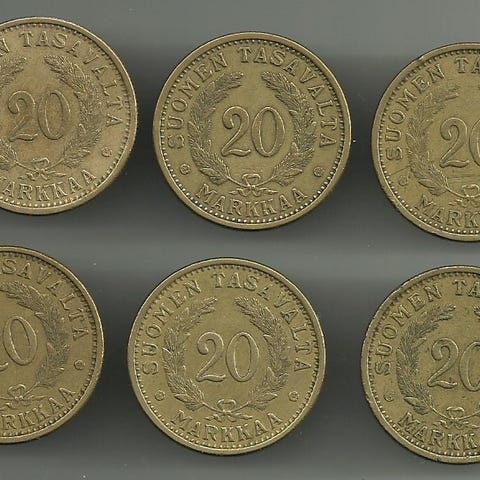Suomen tasavalta 20 markkaa kolikko 1956 Leimakiiltoinen
