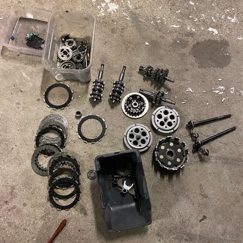 Rabasa euro 3 moottorin osia ja derbin keula ja linkku swingi ja enska vanteet