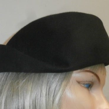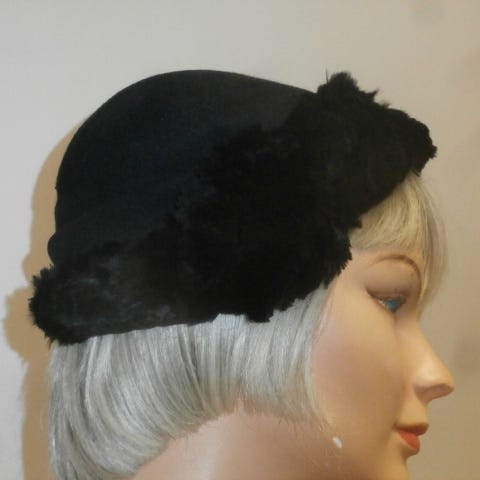 Hattu 1. Musta vintage-hattu, huopaa ja tekoturkista