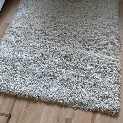 Luonnonvalkoinen nukkamatto 133 cm x 200 cm.