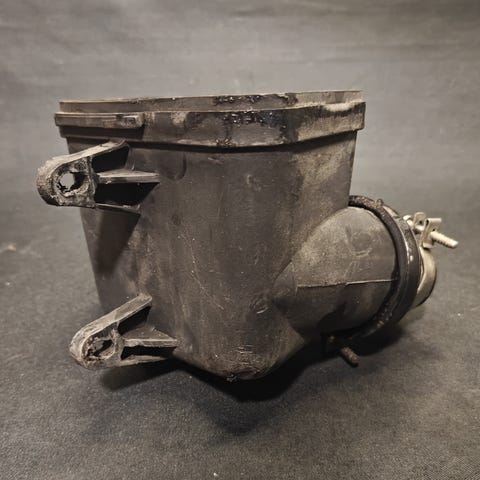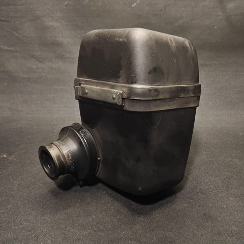 Käytetty ilmanpuhdistin. Havaitut viat/puutteet: kaasuttimen välikumi kovettunut, pohjasta korjattu jollain liimalla tms. ja klemmarit puuttuu.
