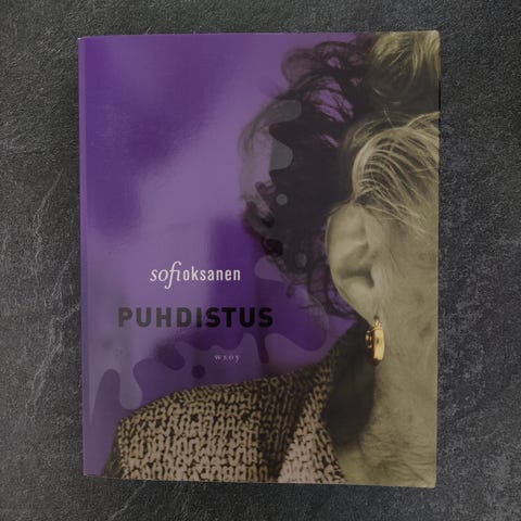 Pehmeäkantinen Sofi Oksasen klassikkoteos Puhdistus, 380 sivua. Kulmat hieman kuluneet, muutoin ehjä/siisti.