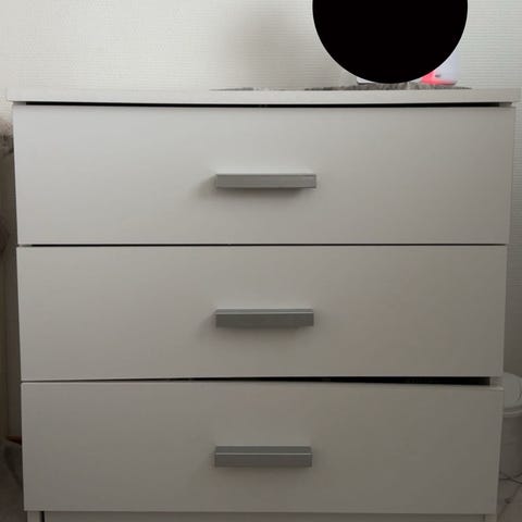 Pyörillä varustettu lipasto, joka oikein hyvässä kunnossa.