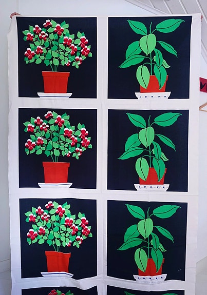 Paljon muitakin vintage ja retro kankaita verhoja pöytäliinoja jne tekstiilejä myynnissä.