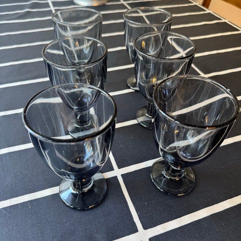 Iittala Verna juomalasit, jotka on valmistettu kirkkaasta lasista. Lasit ovat tyylikkäitä ja ajattomia, sopien monenlaisiin kattauksiin. Setti sisältää kuusi lasia, jotka ovat ok kunnossa. Yhdessä tarra.
