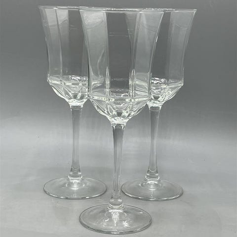 Kirkas valkoviinilasi, jossa on kaunis leikkauskuvio. Setissä on yhteensä yksitoista lasia (kuvassa vain 10), jotka ovat samanlaisia. Tyyli on klassinen ja ajaton, sopien monenlaisiin kattauksiin ja tilaisuuksiin.