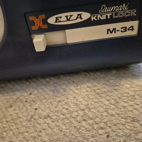 Baby Lock BL3-406D saumuri. 3-lankainen kone 70-luvulta. Terät kohtuukunnossa. Poljin pudonnut maahan ja takareuna korjattu liimaamalla. Ohjekirjat tallella. Runko metallia. Vain nouto Kiertokadulta.