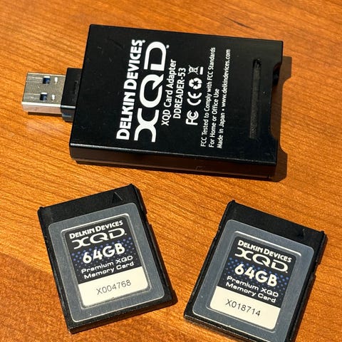 • 2 kpl Delkin Devices 128GB CFexpress Type B POWER (erittäin nopeita ja luotettavia kortteja).