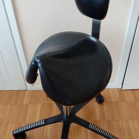Myydään tukeva ja laadukas Meychair ergonominen satulatuoli pyörällisellä jalustalla. Sopii hyvin työpisteelle, studioon, hoitolaan tai esimerkiksi seisomapöydän kanssa käytettäväksi.