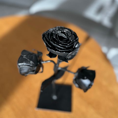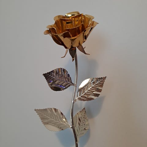 Metallinen ruusu kultasepänliikkeestä ostettu.
