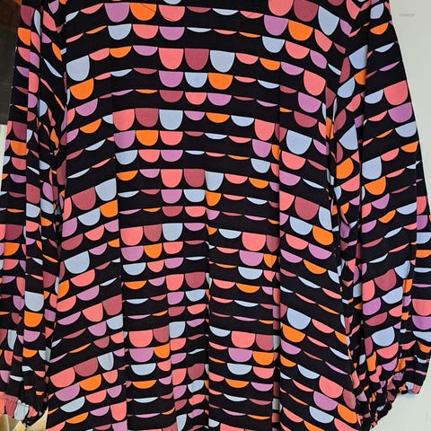 Finlayson Elefantti trikootunika, väri violetti, koko M on reilu, vastaa ainakin L-kokoa. Kai-kai 58 cm, pituus olalta helmaan 72 cm. Puuvillaa 95%.