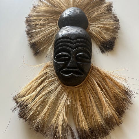 Kenialainen naamio vuodelta 1987. Korkeus n. 50 cm. Sijainti Helsinki, Taka-Töölö. Maksu käteinen tai MobilePay.