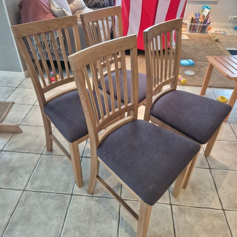 Ruokapöydän tuoli, jossa on harmaa kangasverhoilu ja puiset jalat. Tuolissa on pehmeä istuin ja selkänoja, jotka tarjoavat perusmukavuutta ruokapöydän ääressä. Neutraali harmaa väri ja puumaiset jalat sopivat monenlaisiin sisustuksiin. Sopii käytettäväksi ruokapöydän tuolina keittiössä tai ruokailutilassa. Saatavilla 3 kappaletta.