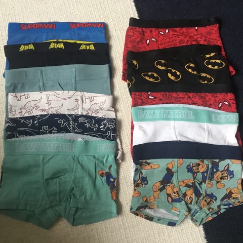 Myydään kopallinen ensi kalsareita seuraaville pikkupojille. Koko 90, pääsääntöisesti koppa täynnä prisman housen kalsareita, muutama H&M pöksy mukana. Laskin että 38kpl, ollut kaksosilla käytössä. Pyykit pesty aina 60 asteisella ohjelmalla.