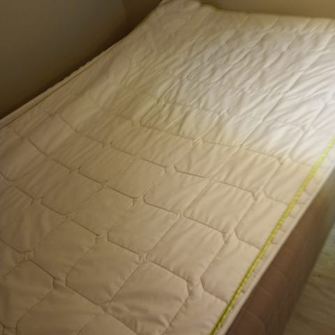 Teinillä käytössä ollut 120cm sänky, joka koostuu runkopatjasta, paksusta petarista sekä ohuemmasta petarista. Patjojen pinta on nukkaantunut. Tukeva ja painava sänky, joten omat kantajat mukaan. Nouto Kotkasta viikolla 17.