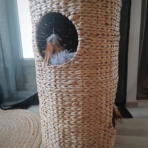 Tämä on tosi kevyt rakenneelta ja kun käyttää heiluu helposti, Suosittelen naulaamaan pohjan paksuun lankkuun painon lisäämiseksi, silloin ois tosi hyvä kissalle