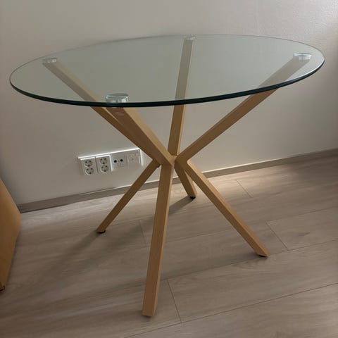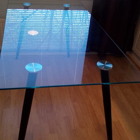 Lasilevy 70x70, mustat metallijalat joissa säätömahdollisuus, jos lattia on vaikka epätasainen 😊