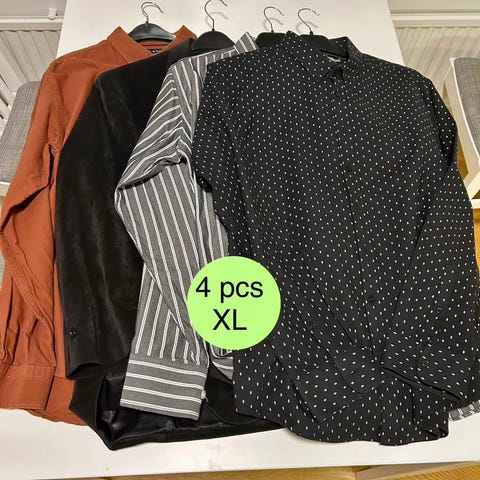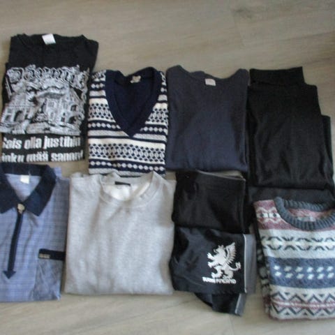 Vaatepaketti jossa pitkä sekä lyhythihaisia kauluspaitoja, kaikki kokoa XXL, yksi T-paita myös.