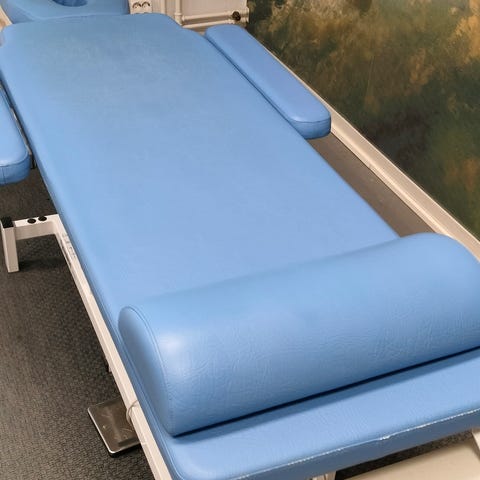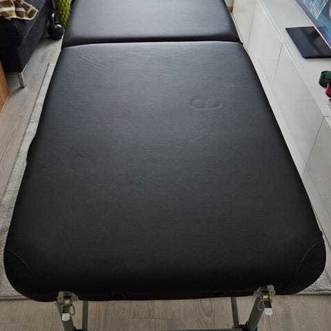 Hierontapöytä lisäosilla. Kantopussi repeytynyt mutta sen saa suojaksi mukaan jos haluaa.
