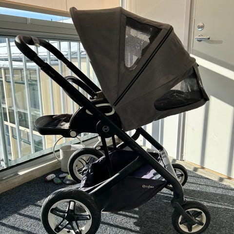 Tarkka malli epäselvä, voin yrittää tarkistaa jos löytyy joku kuitti tai ohjekirja, jos sillä merkitystä. Vaikuttaisi että voisi olla Balios S: https://en.babymax.nl/cybex-balios-s-lux-3in1-travelsystem-stormy-blue-cloud-g.html
