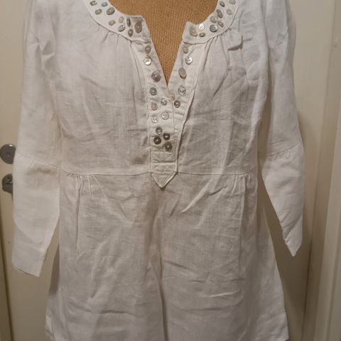 Kai-kai 51 cm, olka-helma 68 cm. 100% pellavaa. Postitus 5 e. Ei Toridiiliä käytössä. Helman leveys puolimitta 75 cm