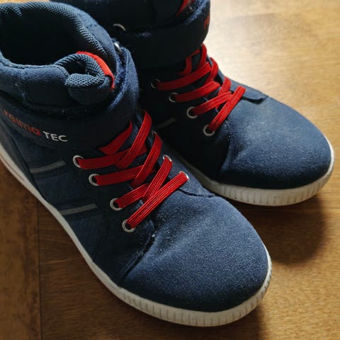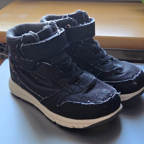Yksi kesä käytetty. Nimikoitu. Ehjät. Tyypillistä käytön jälkeä. Suuntaa-antava sisäpohja 17,5 cm.