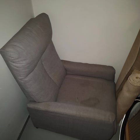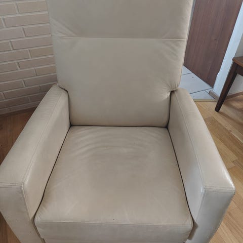 Kangasverhoiltu beige lepotuoli mekanismilla