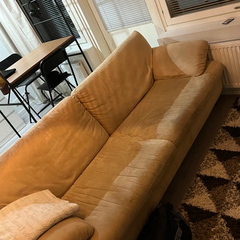 Hyväkuntoinen jämäkkä lasten sohva askosta, hyvin säilyttänyt muotonsa ja kestänyt jopa aikuisten istumista. Eläintalous. Nouto Jumallahdesta.