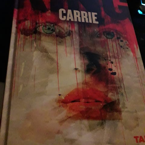 Tästä Stephen Kingin klassikko Carrie. Kunto kohtalainen